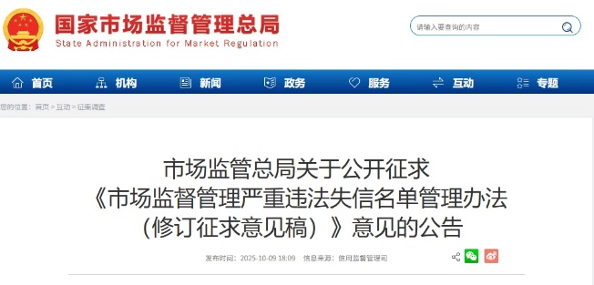 近日,为进一步深化经营主体信用体系建设,市场监管总局起草了《市场监督管理严重违法失信名单管理办法(修订征求意见稿)》,并向社会公开征求意见。